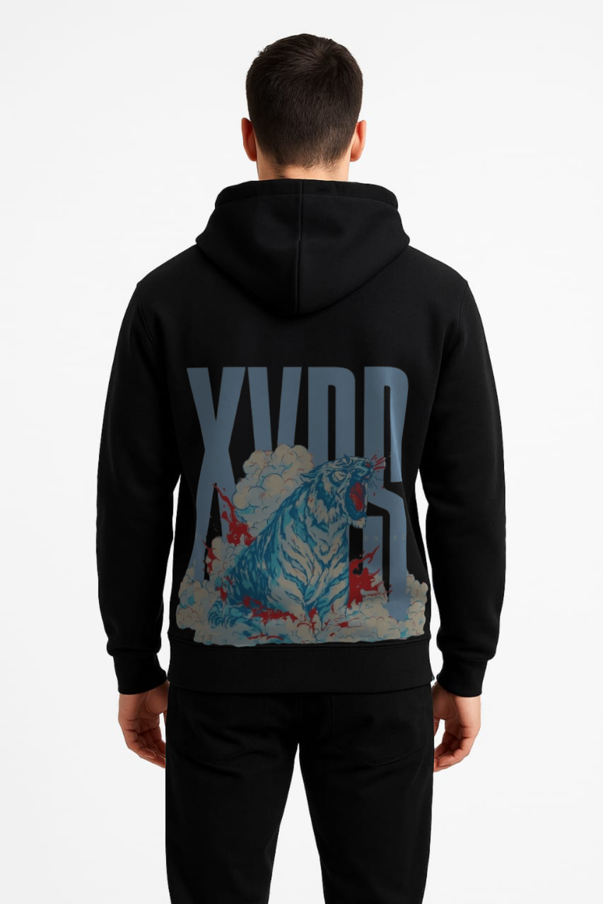 "Limited Stock"! Make a bold statement with the White XVDDR Tiger Graphic Hoodie — where comfort meets creativity. This premium white hoodie features an eye-catching back print of a roaring blue tiger surrounded by dynamic clouds and splashes of red, symbolizing power and energy. The large “XVPS” typography in soft blue adds a modern, streetwear-inspired edge to the design.